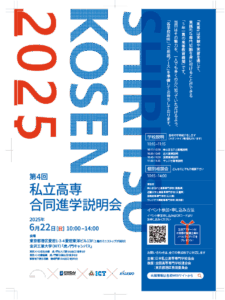 全国の私立高専が集結! 『私立高専合同説明会』開催! 高専は、実験や実習を通じて実践的な専門知識を身につけられる5年一貫の高等教育機関です。「ものづくり」や「IT」、「国際教育」に関心のある中学生・保護者の皆様、ぜひこの […]