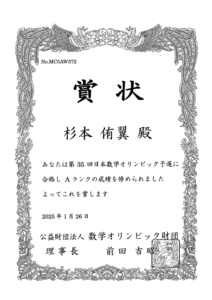 本校3年の杉本侑翼さん(制御情報コース(特進))が、第35回日本数学オリンピック(Japan Mathematical Olympiad:略称JMO)の予選をAランクの成績で合格しました!JMOは、国際数学オリンピック […]